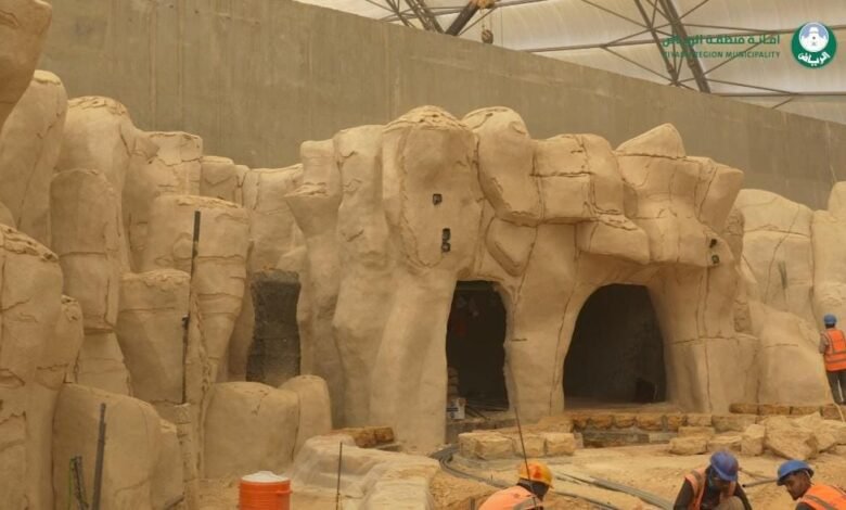 وقد تجاوزت نسبة إنجاز العمل في المعلم الأيقوني “مبنى الهلالين” بنسبة تتجاوز 70٪ ، والذي تم تغطيته سقفه بمادة “ETFE”، وهي مادة شفافة تسمح بنفاذ الضوء وذات جودة عالية وبديل طويل الأمد، وتتميز بكونها موثوقة واقتصادية. بالإضافة إلى ذلك، تم تركيب النوافذ العلوية للحدائق المغلقة، والعمل في التكسيات الحجرية للهلالين، وأعمال فواصل التمدد لتغطية الهيكل المعدني. كما وصلت نسبة الإنجاز في التشكيلات الصخرية إلى 35٪، وفي حديقة الطيور إلى 70٪، وفي مبنى الطاقة إلى 60٪.