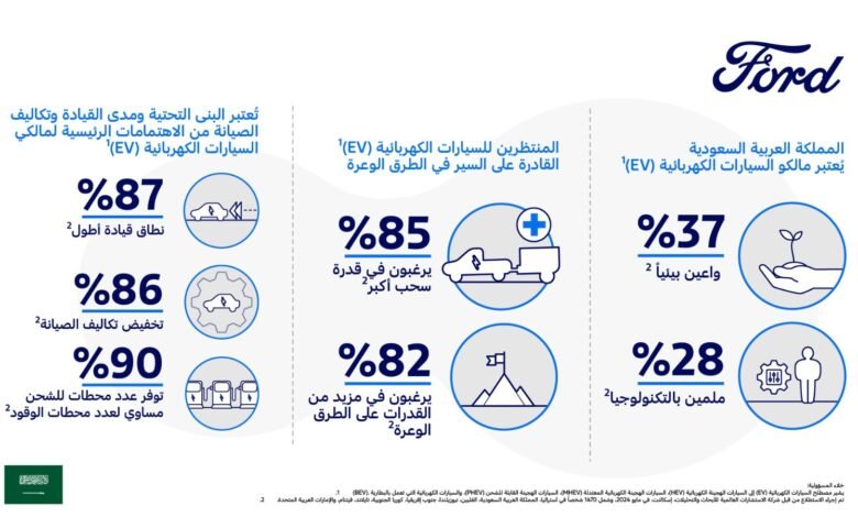 كجزء من أبحاثها في عدة أسواق، أجرت فورد دراسة على المقيمين في المملكة العربية السعودية ممن يملكون مركبة أو يبحثون عن شراء واحدة جديدة، وذلك لفهم آرائهم اتجاه المركبات الكهربائية، مما يساعد فورد في الاستعداد بشكل أفضل لتحقيق مستقبل كهربائي مستدام. تأتي هذه الخطوة كجزء من التزام فورد بدعم مستقبل المنطقة في مجال المركبات الكهربائية، بما يتماشى مع رؤية المملكة 2030.
