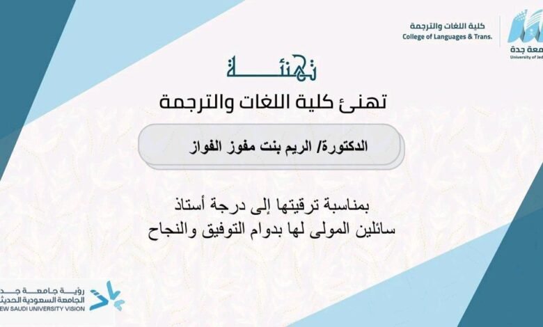 وافق المجلس العلمي بجامعة جدة بترقية الدكتورة الرِّيم بنت مفوّز الفوَّاز إلى درجة أستاذ ، والدكتورة الرِّيم متخصصة في مجال السيميائيات في كلية اللغات والترجمة، نشرت في عديد من الدوريات والمجلات المحكمة والمتخصصة، وشاركت في عدة ملتقيات ومؤتمرات وندوات ،وحكمت العديد من الجوائز والمسابقات داخل المملكة وخارجها.كما حصلت على جوائز تقديرية في مجالها .