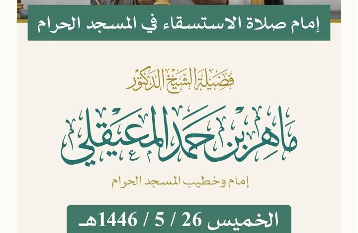 الشيخ المعيقلي يؤم المصلين في صلاة الاستسقاء في المسجد الحرام والشيخ المهنا في المسجد النبوي