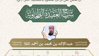 مرفت طيب – مكة المكرمة تنظم رئاسة الشؤون الدينية بالمسجد الحرام والمسجد النبوي درس علمي مميز بعنوان: “شرح العقيدة الطحاوية”،…