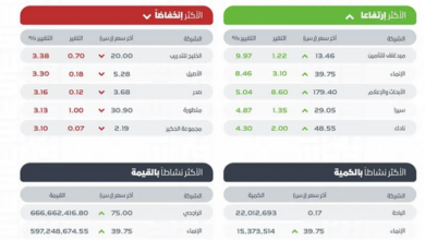 مؤشر سوق الأسهم يغلق مرتفعًا عند مستوى 11882.68 نقطة