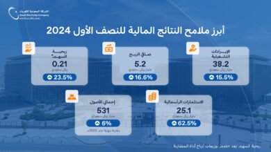 ارتفاع أرباح الشركة السعودية للكهرباء بـ (%16.6) في النصف الأول 2024.