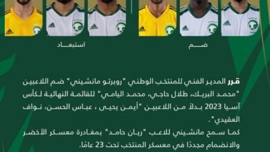 استبدل الإيطالي روبرتو مانشيني مدرب منتخبنا الوطني الأول لكرة القدم اليوم السبت ثلاثة لاعبين من قائمة الفريق المشاركة في بطولة…