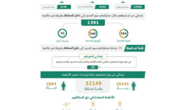 في إطار حملاتها الأمنية المشتركة لملاحقة مخالفي الأنظمة، أعلنت وزارة الداخلية السعودية عن ضبط 21,638 شخصًا خالفوا أنظمة الإقامة والعمل…