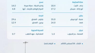 “البيئة”: (51) محطة ترصد هطول أمطار في (6) مناطق وجازان الأعلى كميةً بـ (35.0) ملم