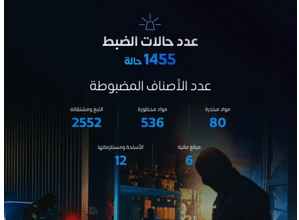 المنافذ الجمركية تضبط 1455 حالة تهريب وممنوعات خلال أسبوع
