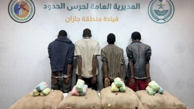 حرس الحدود بجازان يقبض على 4 مخالفين لنظام أمن الحدود لتهريبهم 80كلجم من القات المخدر