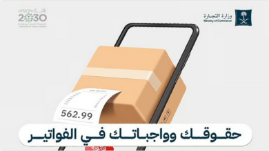 أوضحت وزارة التجارة خمسة حقوق أساسية للمتسوقين يجب توفرها في الفواتير عند التسوق عبر التجارة الإلكترونية. وقالت الوزارة في أنفوجرافيك…