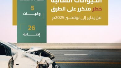 كشفت الهيئة العامة للطرق عن إحصائيات الحوادث الناجمة عن دخول الحيوانات السائبة إلى حرم الطرق خارج النطاق العمراني خلال عام…